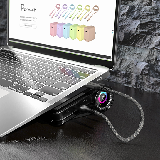 側面に設置された液晶ディスプレイにより、接続状況、出力値、