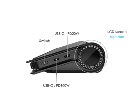 出力ポートはUSB-Cx2口、USB-Ax1口。