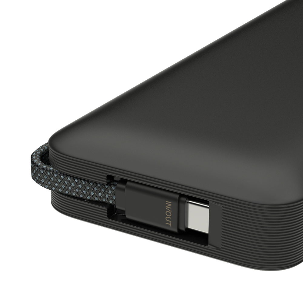 ●ハンドストラップになるUSB-C直結ケーブルで持ち運び、充電に便利。