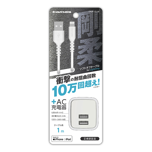 充電器 DNA10LW セパレートAC充電器 LTN ・衝撃の耐屈曲回数10万回越え!+AC充電器※当社調べ ・USB-Aポート×2/合計最大出力2.4Aで2台同時充電可能 ・海外でも使えるAC100V~240V対応※国や地域によって市販の変換プラグが必要になります。 ・Apple認証ライトニングソフトタフケーブル1.0m 適合表 法人様向け製品問い合わせフォーム SKU・ DNA10LW カテゴリー: ALL, USB-A & ライトニング, カタログ(旧), ライトニング, 充電ケーブル, 製品カタログ tama's