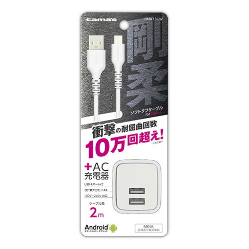 充電器 DNA13CW セパレートAC充電器 Type-C ・衝撃の耐屈曲回数10万回越え!+AC充電器※当社調べ ・USB-Aポート×2/合計最大出力2.4Aで2台同時充電可能 ・海外でも使えるAC100V~240V対応※国や地域によって市販の変換プラグが必要になります。 ・Type-Cソフトタフケーブル2.0m 適合表 法人様向け製品問い合わせフォーム SKU・ DNA13CW カテゴリー: ALL, USB-Cケーブル付き, カタログ(旧), タイプC, 充電器, 製品カタログ tama's