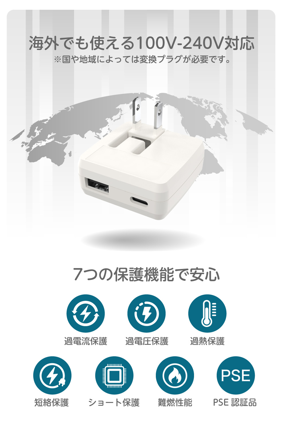 ポート : USB-C(Power Delivery)×1、USB-A×1