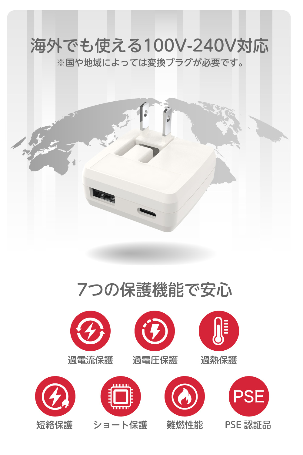 材質 : (本体ケース)PC、(ACプラグ)銅合金+ニッケルめっき