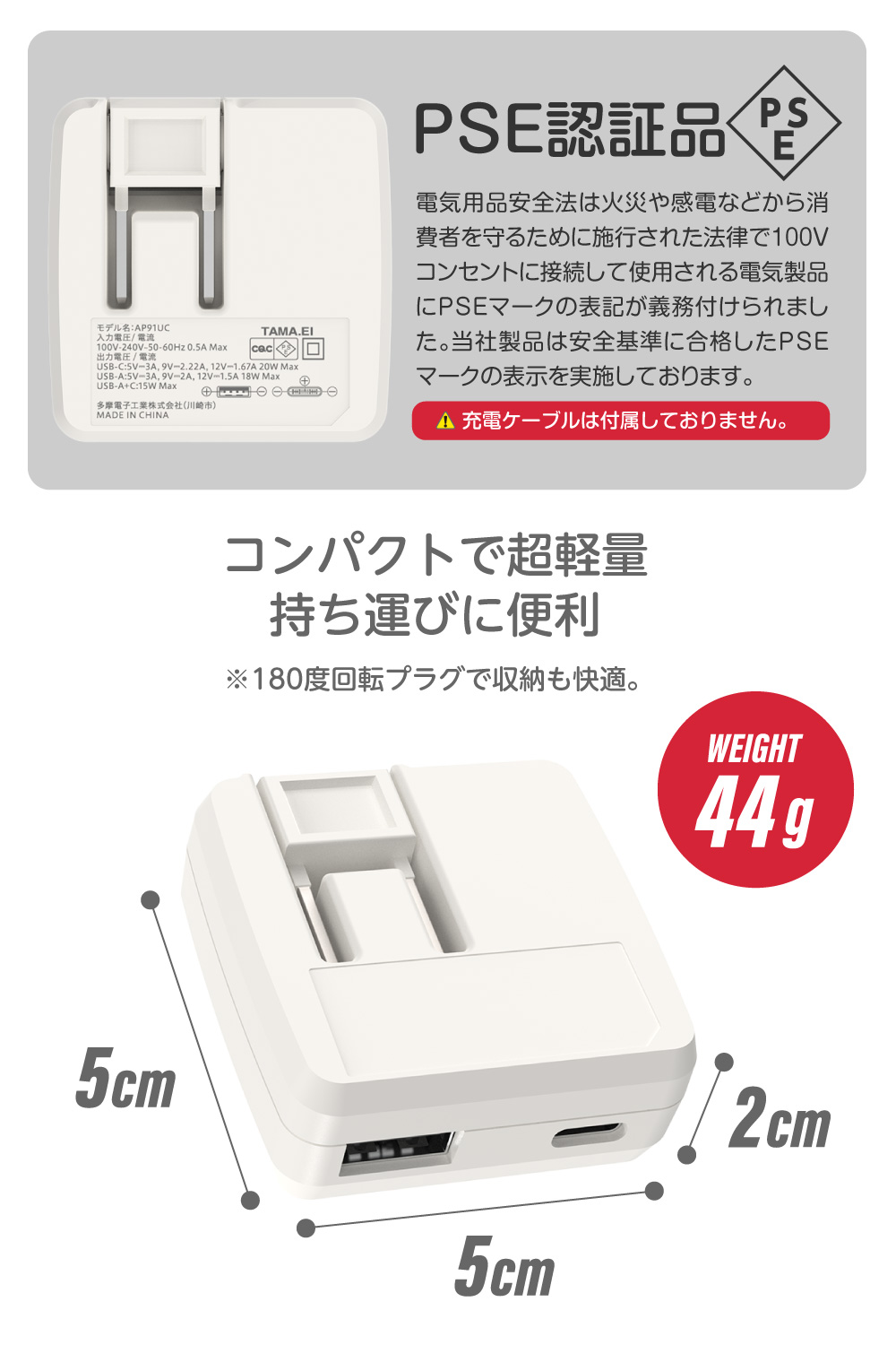 サイズ : 約W50×H50×D20mm(ACプラグ含まず)