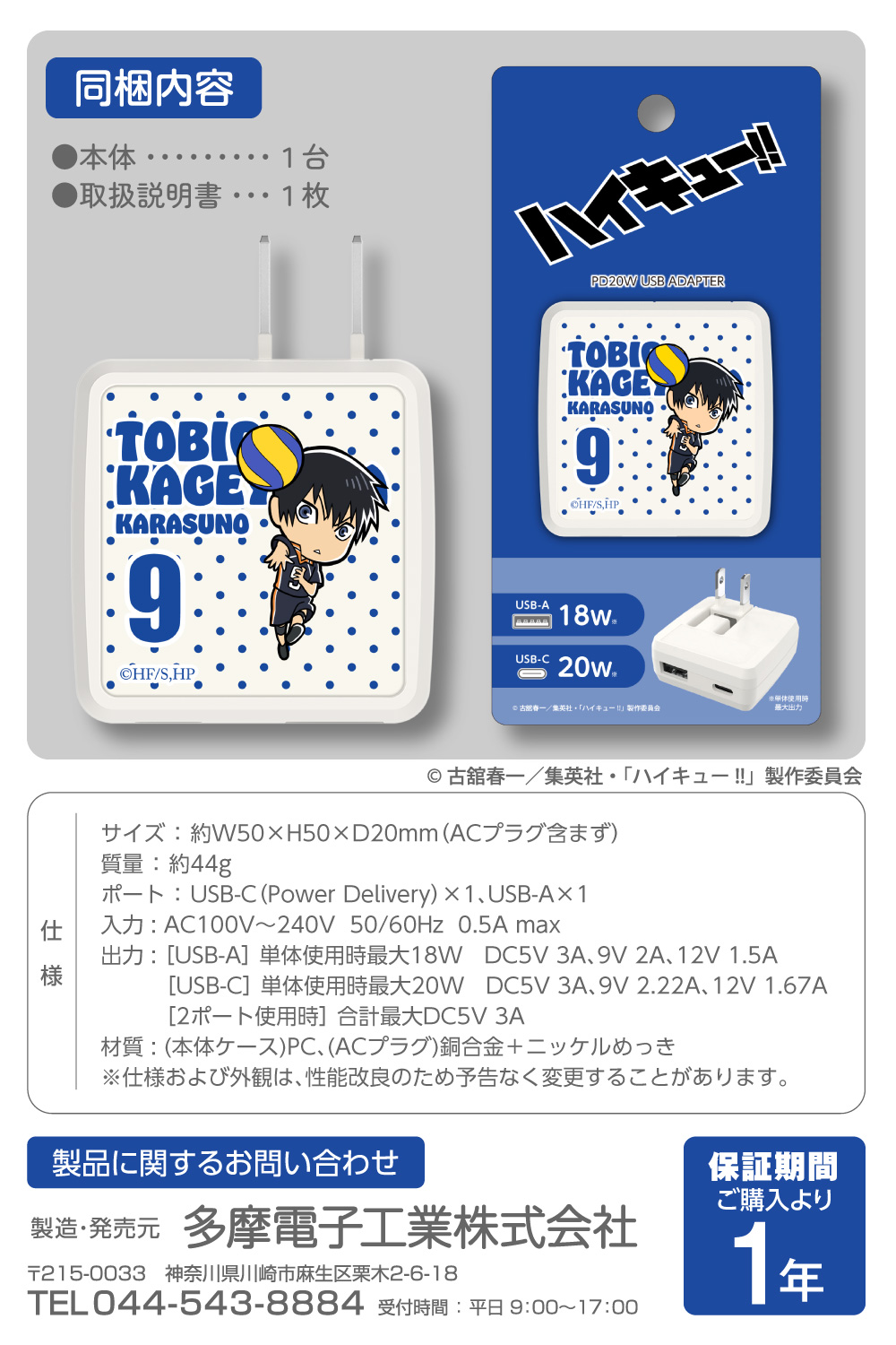 ハイキュー!! PD20W AC充電器 影山飛雄