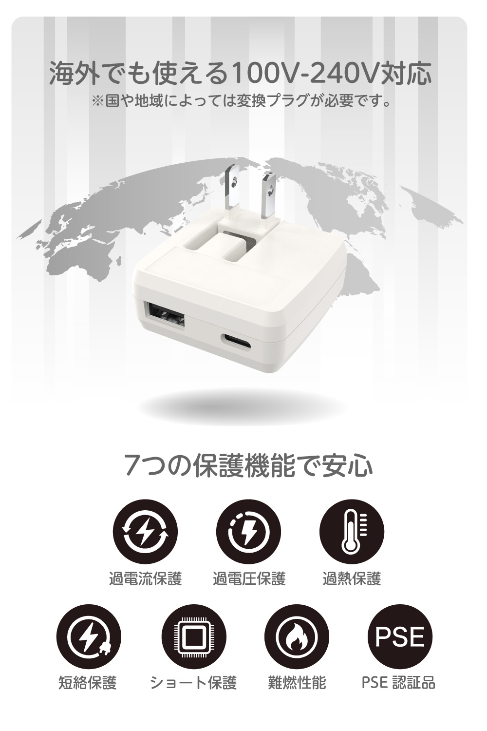ポート : USB-C(Power Delivery)×1、USB-A×1