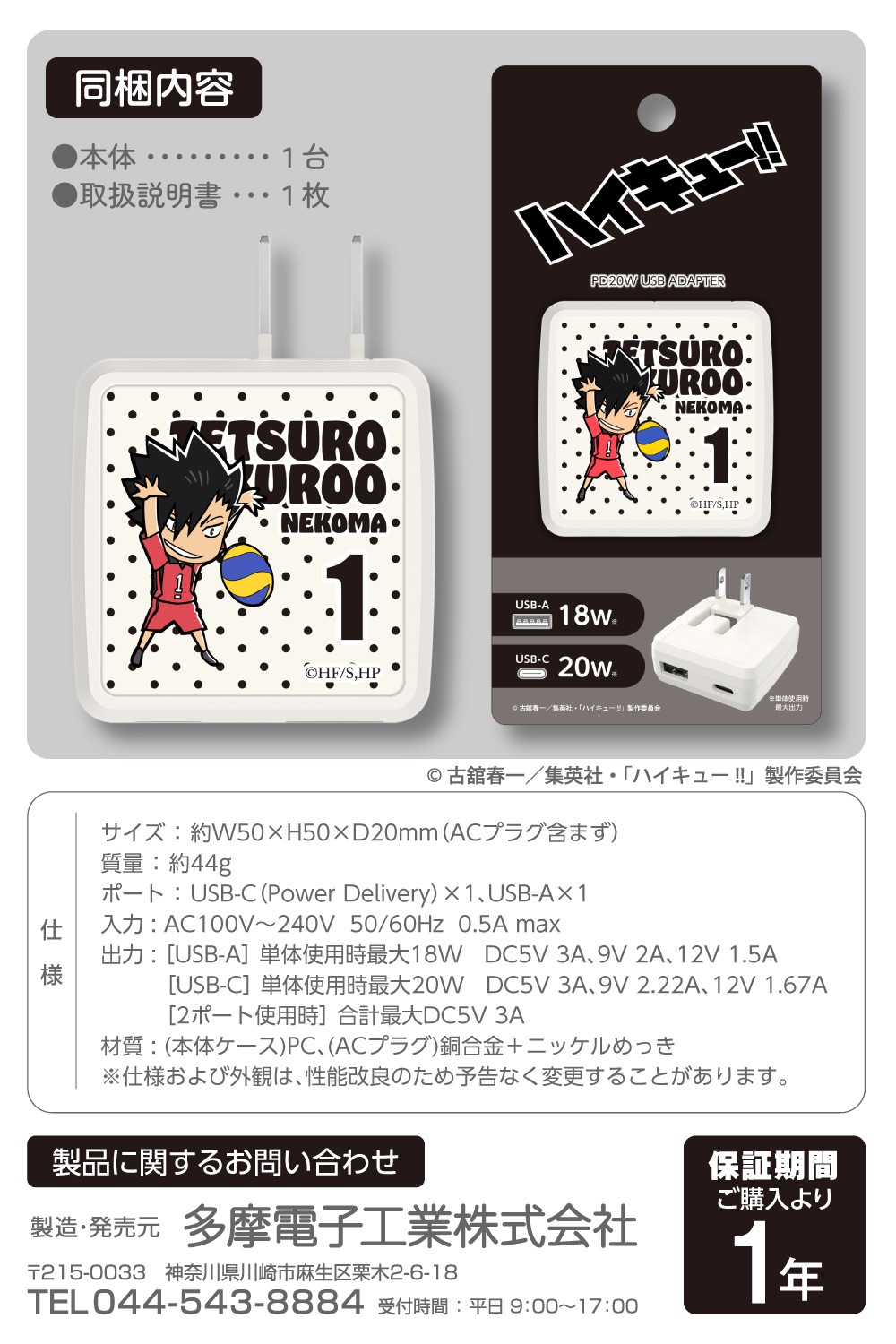 ハイキュー!! PD20W AC充電器 黒尾 鉄朗