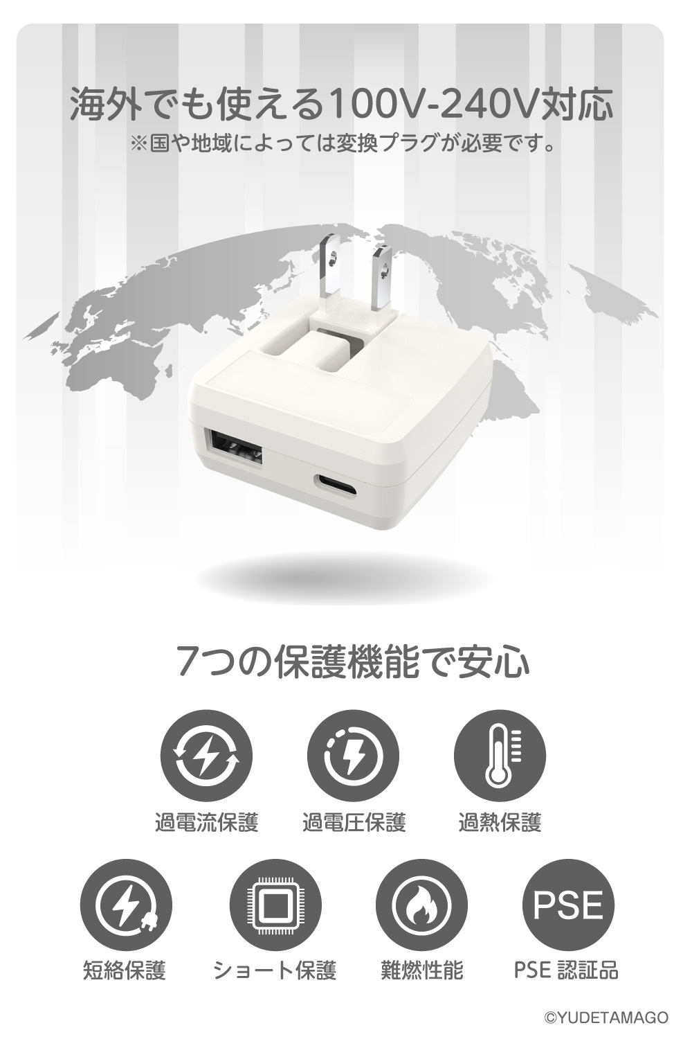 ポート : USB-C(Power Delivery)×1、USB-A×1