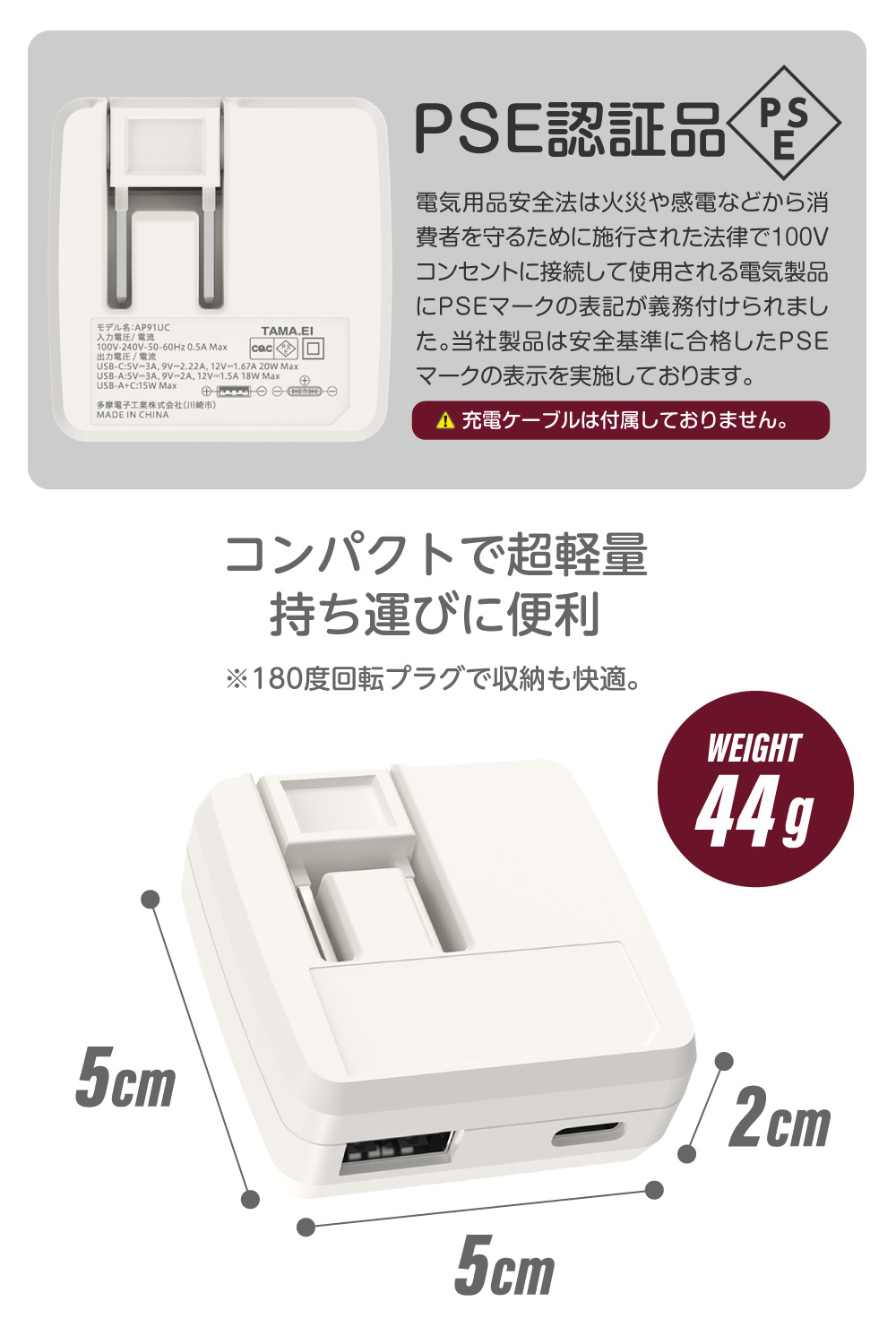 サイズ : 約W50×H50×D20mm(ACプラグ含まず)