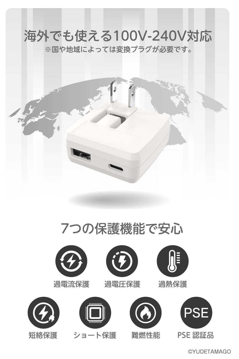 ポート : USB-C(Power Delivery)×1、USB-A×1