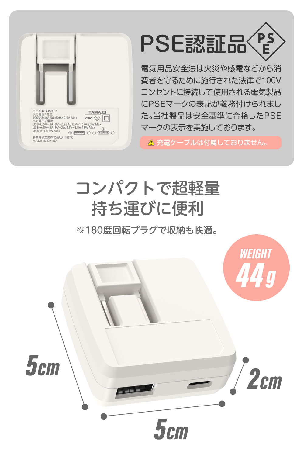 サイズ : 約W50×H50×D20mm(ACプラグ含まず)
