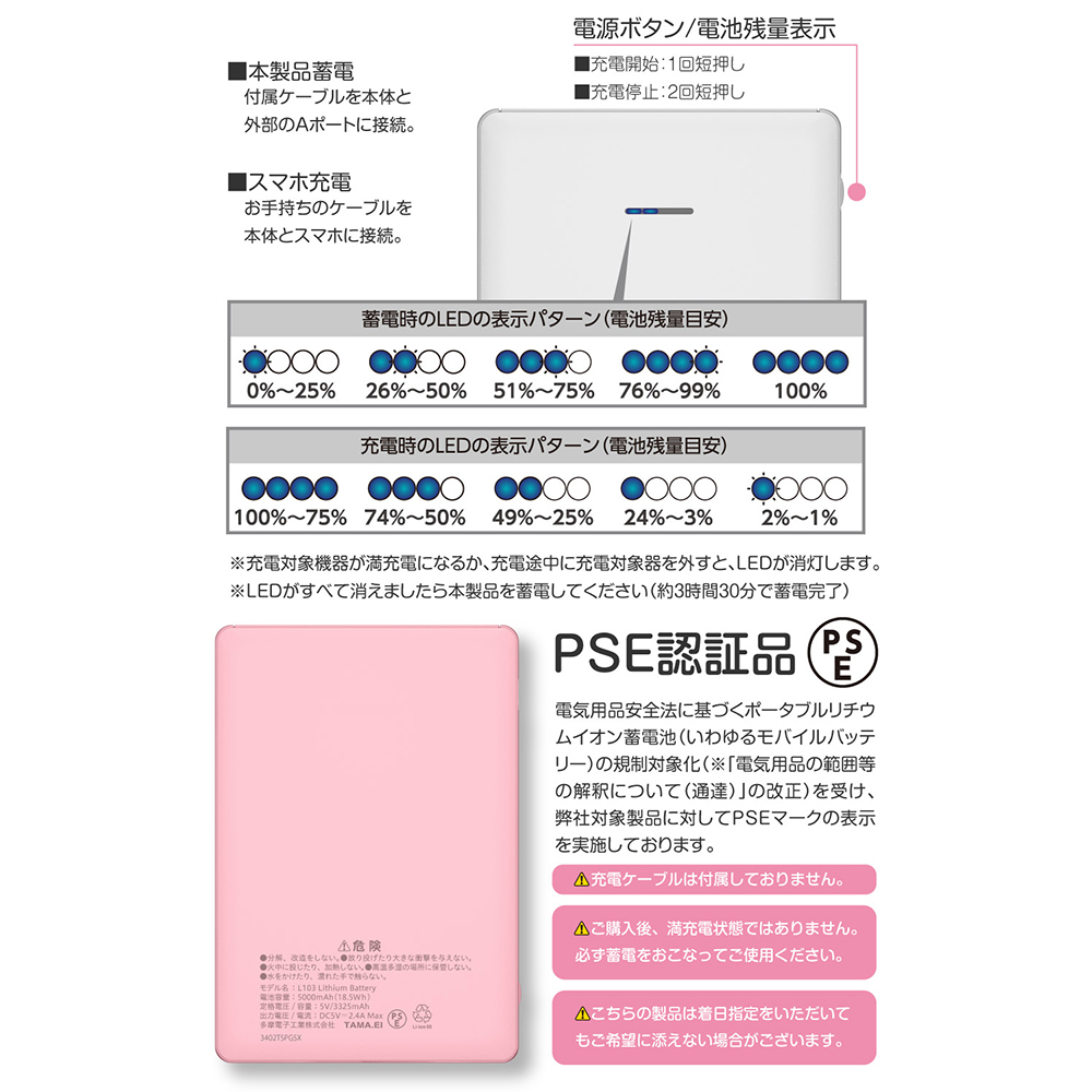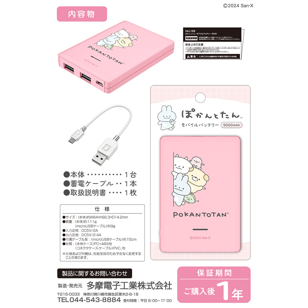 モバイルバッテリー SX-L103P-PT ぽかんとたん モバイルバッテリー5000 ピンク ●約500回繰り返し使える!経済的なリチウムイオンポリマー電池を採⽤したモバイルバッテリー5000mAh。 ●USB-Aポート×2で2台同時充電が可能。 ●本体蓄電microUSBケーブル15cm付属。 取扱説明書ダウンロード 適合表 購入する 法人様向け製品問い合わせフォーム SKU・ SX-L103P-PT カテゴリー: 5000mAh~, ALL, カタログ(旧), モバイルバッテリー, モバイルバッテリー, 製品カタログ コラボ企画