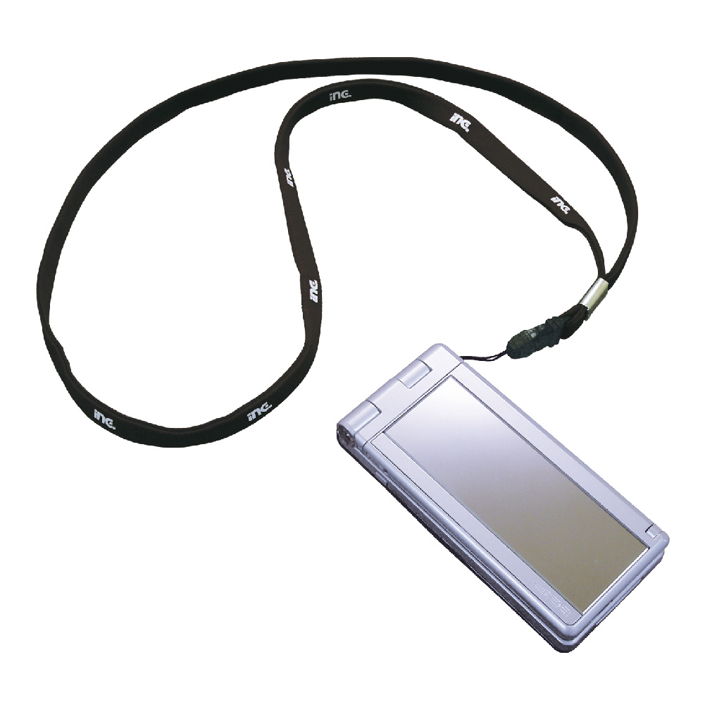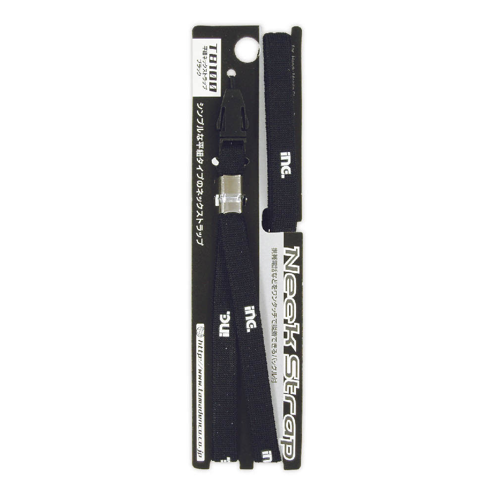 携帯電話、デジタルミュージックプレーヤー、デジタルカメラなどを首かけスタイルで楽しめる、シンプルな平紐タイプのネックストラップ。 ストラップを使用しない時などには、バックル両サイドのツメを押して取り外すことがでます。
