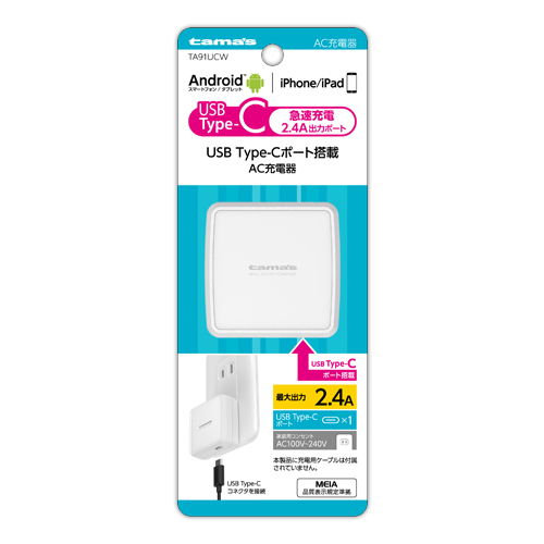 充電器 TA91UCW コンセントチャージャー2.4A Cポート Type-Cポート搭載の2.4A出力急速充電対応コンセントチャージャー!! USB Type-Cポート×1口 海外でも使える240V対応。 コンセントに挿したとき場所をとらない薄型タイプ。180°可動ACプラグ。 ※本製品に充電用ケーブルは付属されておりません。 適合表 法人様向け製品問い合わせフォーム SKU・ TA91UCW カテゴリー: ALL, USB 充電器, その他, カタログ(旧), 充電器, 製品カタログ tama's