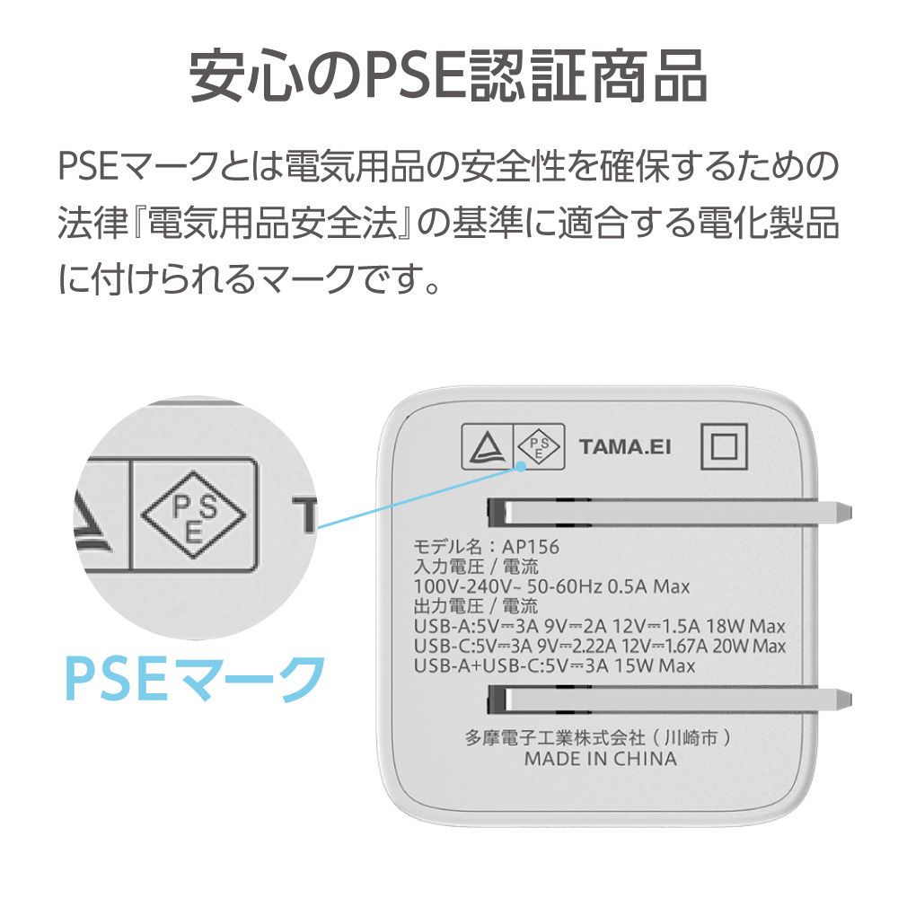 ●単体使用時最大20WのUSB PD対応 USB-Cポートを搭載したAC充電器。