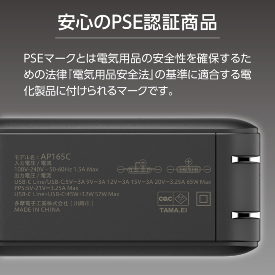 ●単体使用時最大65WのUSB PD(USB Power Delivery)対応 巻取式USB-CケーブルとUSB-Cポートを搭載したAC充電器。