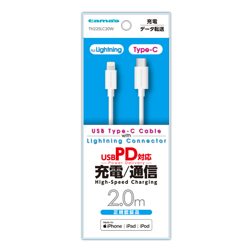 充電 ケーブル TH225LC20W C to Lケーブル 2.0m ホワイト USB PD(パワーデリバリー)対応。最大60W(20V/3A)の高速充電に対応。※出力は、接続される機器に依存します。 充電だけではなくiTunesとの同期も可能。 ケーブル長、約2.0m 適合表 法人様向け製品問い合わせフォーム SKU・ TH225LC20W カテゴリー: ALL, USB-C & ライトニング, カタログ(旧), ライトニング, 充電ケーブル, 製品カタログ tama's