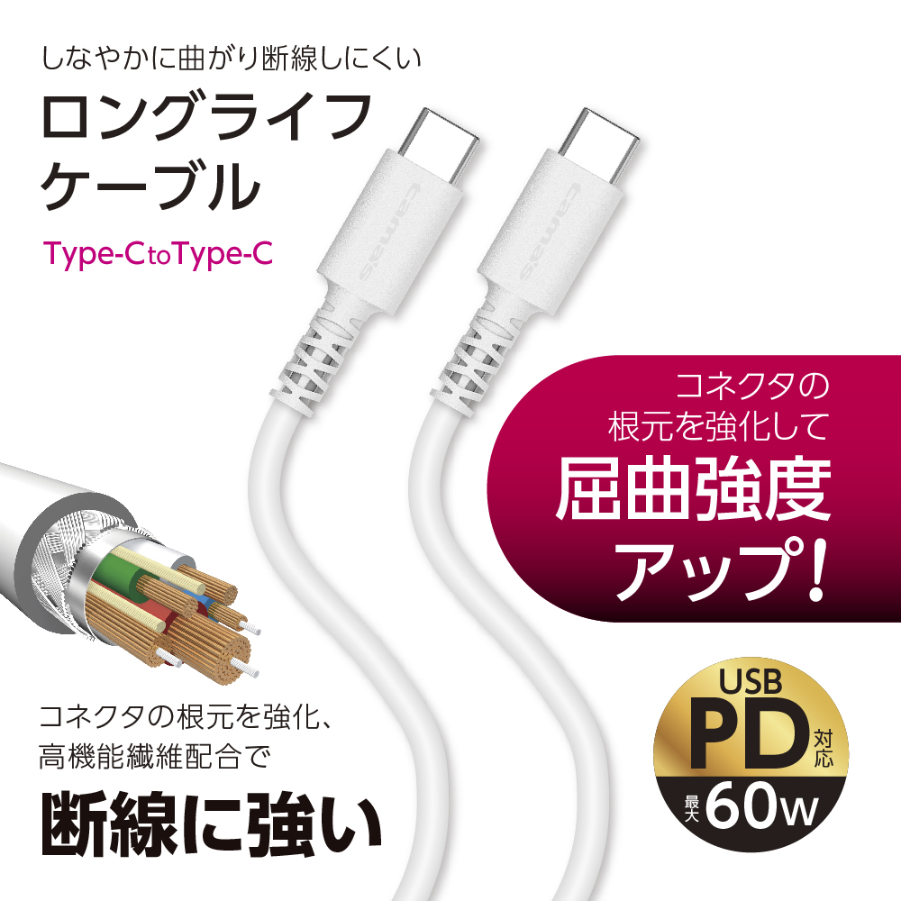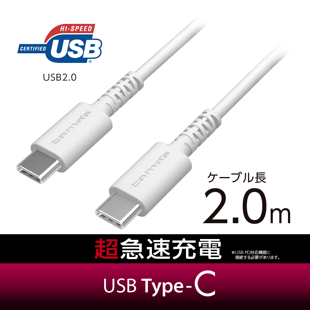 充電器 ケーブル TH265CC20W USB2.0 Type-C/Type-Cケーブル 2.0m ホワイト ●最大60Wの高速充電やデータ転送が可能なUSB PD(Power Delivery)に対応のUSB Type-Cケーブル。 ※USB PD対応機器に接続する必要があります。 ●コネクタの根元を強化、高機能繊維配合で、断線に強い。 取扱説明書ダウンロード 適合表 法人様向け製品問い合わせフォーム SKU・ TH265CC20W カテゴリー: ALL, USB-C & USB-C, カタログ(旧), タイプC, 充電ケーブル, 製品カタログ tama's