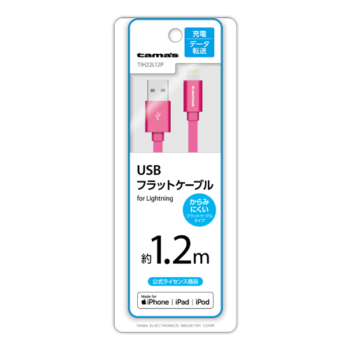充電器 ケーブル TIH22L12P Lightningフラット 1.2mピンク iPhone/iPod/iPad用Lightningケーブル。 からみにくい、フラットケーブルタイプ。 充電・データ転送に対応。 適合表 法人様向け製品問い合わせフォーム SKU・ TIH22L12P カテゴリー: ALL, USB-A & ライトニング, カタログ(旧), ライトニング, 充電ケーブル, 製品カタログ tama's