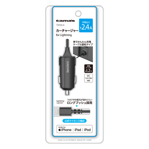 充電器 TK93LK Lightningカーチャージャー2.4A 車でかんたん充電、ケーブル直結タイプ車載用充電器。 コネクタの根元がきれにくいロングブッシュケーブル採用。 充電出力最大2.4A トラックでも使用できるDC12V/DC24V車対応。 アップル公式ライセンス商品。 適合表 法人様向け製品問い合わせフォーム SKU・ TK93LK カテゴリー: ALL, カタログ(旧), カーチャージャー, カーチャージャー ケーブル付き, カー用品, 製品カタログ tama's
