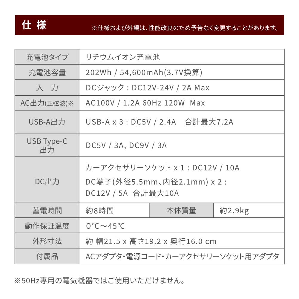 ■充電池容量:202Wh/54,600mAh(3.7V換算)