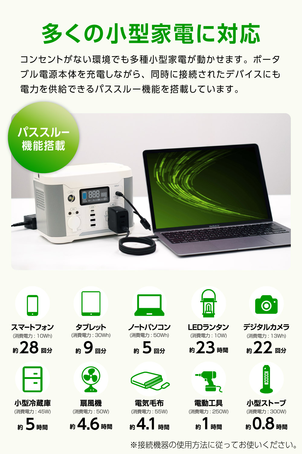 ●充電池タイプ:リチウムイオン充電池 (充電池容量:288Wh/80,000mAh 3.6V換算)