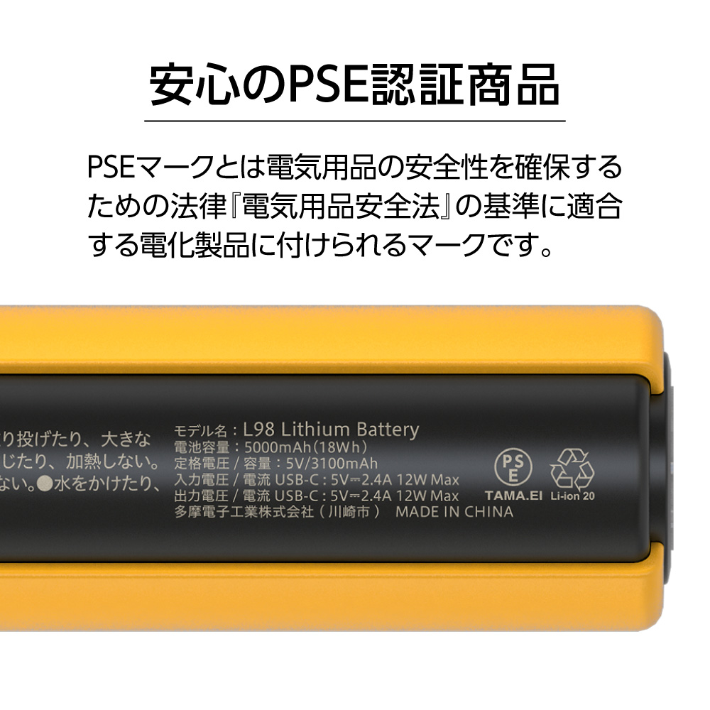 モバイルバッテリー TL98CY LEDライト付きモバイルバッテリー 5000mAh(イエロー) ●LEDライト付き5000mAhモバイルバッテリー。 ●ストラップ型 USB-C to USB-C充電ケーブル付き。 ●USB-Cポート(入出力対応)搭載。 ●過電流・過電圧保護機能を搭載した安全設計。 取扱説明書ダウンロード 法人様向け製品問い合わせフォーム SKU・ TL98CY カテゴリー: 5000mAh~, ALL, カタログ(旧), モバイルバッテリー, モバイルバッテリー, 製品カタログ tama's