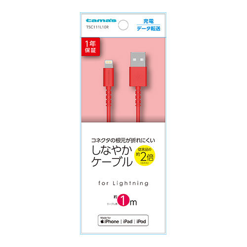 充電器 ケーブル TSC111L10R Lightningストレートケーブル1.0m コネクタの根元が折れにくい、しなやかケーブル iPhone・iPodはもちろん、iPadは2.4A出力の純正Lightning相当の充電に対応。 ※電源側が2.4A出力に対応している必要があります。 充電だけでなくiTunesとの同期も可能。 適合表 法人様向け製品問い合わせフォーム SKU・ TSC111L10R カテゴリー: ALL, カタログ(旧), ライトニング
