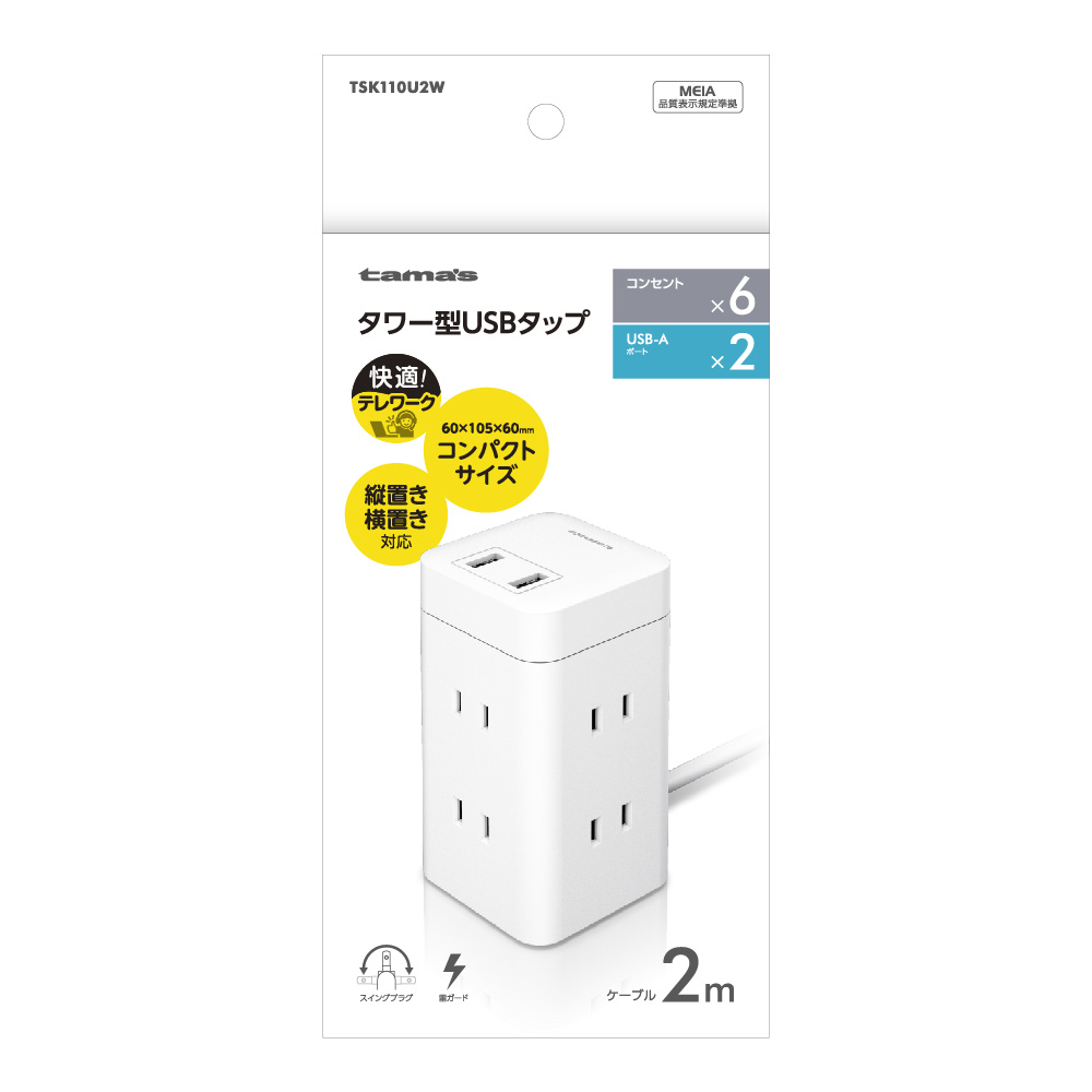 TSK110U2Wタワー型USBタップ 6口+A×2