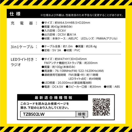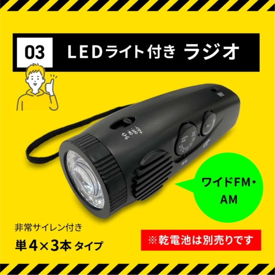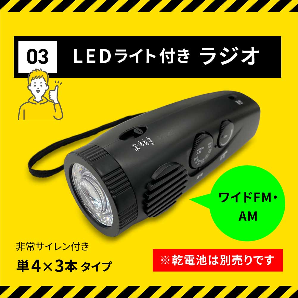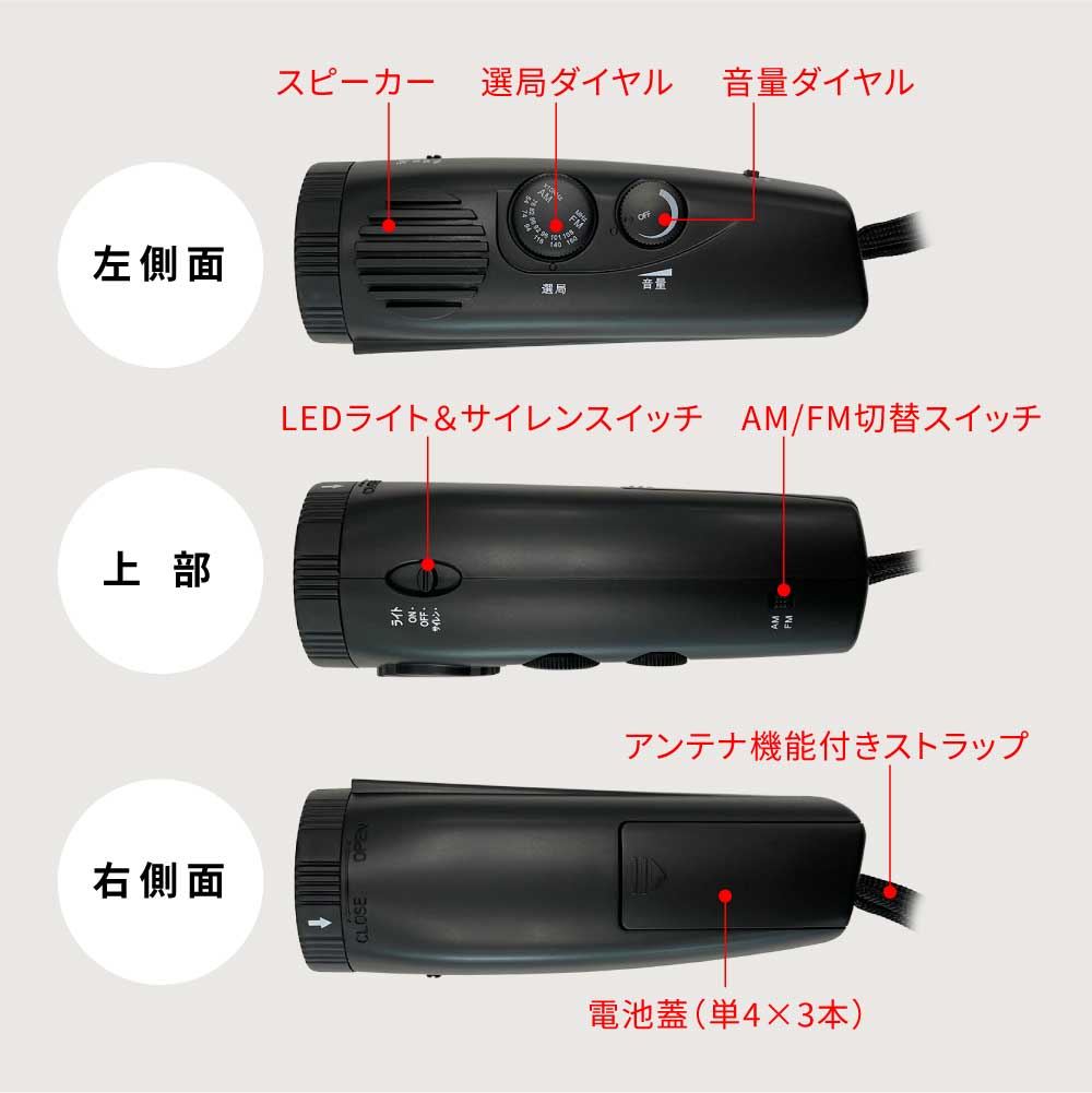 ・連続使用可能時間:FM(音量・中)約11時間/LEDライト点灯約49時間